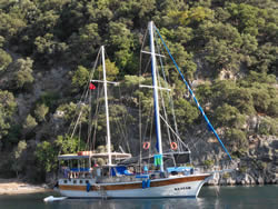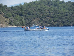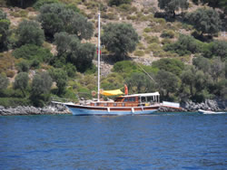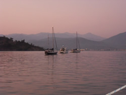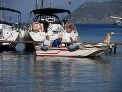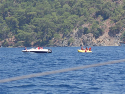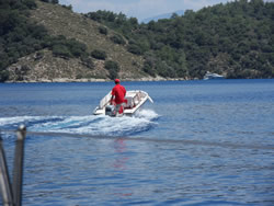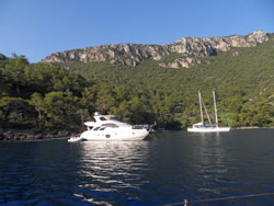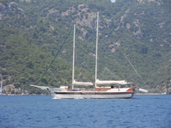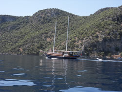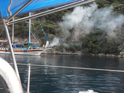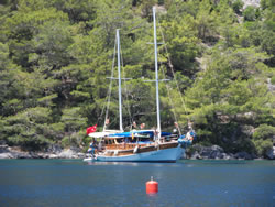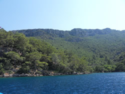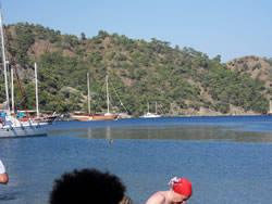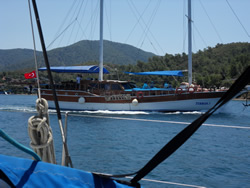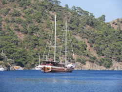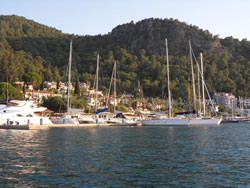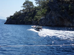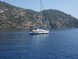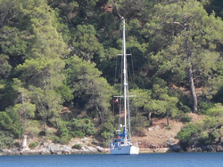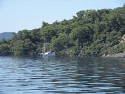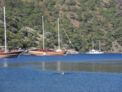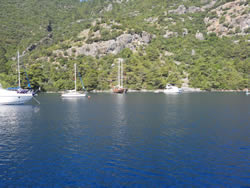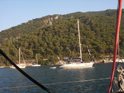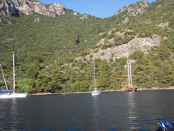 Today we intent to move north to Fethiye, the largest town in this great bay, we had tried yesterday but some thing stopped us - no wind at all?. The predominant winds are "southish", so we will await there arrival around lunch time and sail as much as possible, very wise at almost £9/gallon?