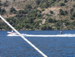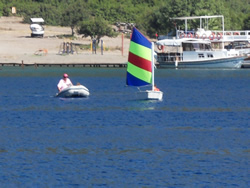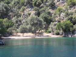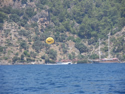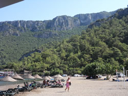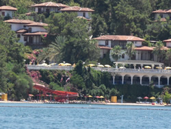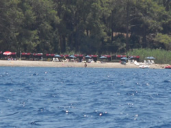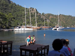 We eventually settled in a small bay called Sarsala Isk, a steep sided ravine, green and very peaceful, nearby a beach, complete with beach cafe, and sailing toys for rent.