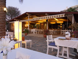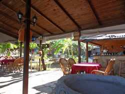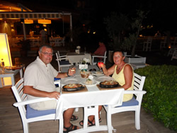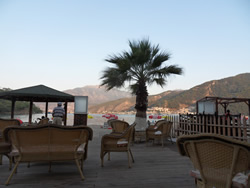 The restaurant well placed to allow you to drink and watch what is going on, our favourite condition? They were very helpful with our dinghy, assisting with our tie up and even climb out - must be our age I think! The beer was cold and went down well, the menu was, as all the others, mezine (cold buffet) with main coarse. They did however boast the best chips ever made?