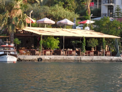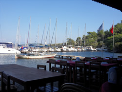 Off the anchorage sits the Yacht Classic Hotel, cleverly offering their pontoon free to dinners at their restaurant, you are charged 20Tl for electric and water only, and the food is brilliant too - must try the pontoons? We leave our dinghy at their pontoon, no issues there either?