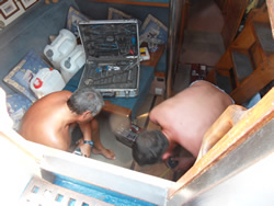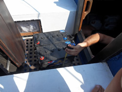 Our batteries had been of some concern for some days now, as was our fridge, running almost none stop to keep things cool in the now 30 min.- 40C max. temperatures. It is clear we are short of battery capacity, but space is a real issue, our batteries are now dying? We discuss our issues with a local company "Captain Eddy" and are offered high tech deep cycle at a relatively "high price" in comparison, but it offers us 400AH for the same physical space of our existing 200AH - we go for it! For an extra 50TL they offer to fit them, test them, we have concerns about the battery fastenings so we go for the package, and were glad we did - they do a great job in our opinion.