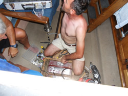 There followed another interesting day, I once again fully occupied, fixing things? We have been quite unlucky this year with equipment failure, we keep verbally listing the failures and their associated costs - quite frightening really? Still, our choice of life style is ours, therefore we are responsibly for the associated costs, the up keep of a live aboard sailboat is not cheep? To not repair or maintain Sailaway would only mean at minimum, the demise of our home, or even total loss at sea? The second phase of the break downs is to email Lee and Trish, soon to join us and have them bring out either replacements or spare parts used in the fixing, we are quite self sufficient. Trish is more than happy to help, only occasionally mentioning having to buy a new suitcase, or take some shoes or "stuff" out of her case?