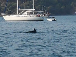 Following the installation, Kevin runs the electrician back through the ECE Marina, on his return we are joined by four dolphins in the bay.
