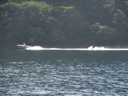 It was 1000 hours but little movement was evident as yet, we saw the guy who took Lee water skiing, we thought at first it was Lee, but he was staying up right far too long? Clearly private lessons for some one we guessed being miles from any resort or boat in fact?