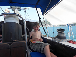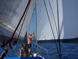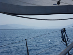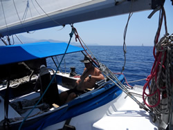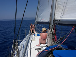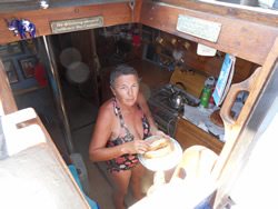 It's then back into the galley for Ann - crew are hungry? The winds stiffen so a good sail north is enjoyed, we turn and then head south to Sarsala.