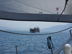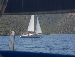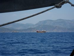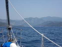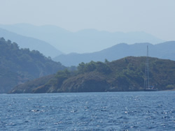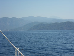 We traveled more or less a direct coarse toward Fethiye, the mountains unfortunately covered with the usual heat haze?