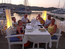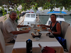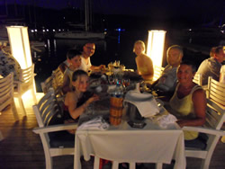 At last they arrive with light luggage, well it looked like at least half of it should have been "set a light any way", they have brought so much I am not sure they even know what they have? Still I cannot grumble, (but I do) as they bring us a larger out board engine for our dinghy and numerous bits for the boat, and of coarse tea and coffee! We decided to take the Yacht Classic Hotel up on it's offer and use there pontoon, of coarse this means we have to dine there, which is not such a bad thing?