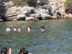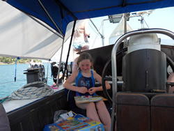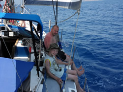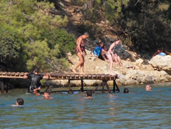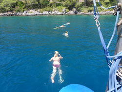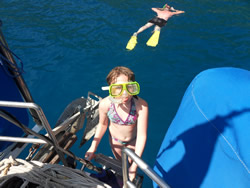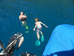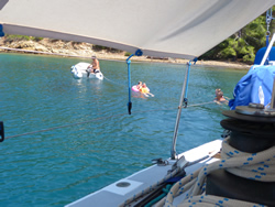 We wake a little late in the morning, first order of the day, swimming, we now have kids on board, all four of them need to be kept occupied!