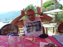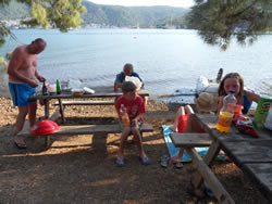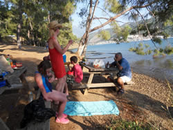 Sarsala is certainly our favourite cove in the Limani, once Sailaway is secured we head ashore to the beach bar and dinner. Ann, Georgia and I try the stuffed mussels on offer on the beach, unfortunately the seller has to brake off from his volley ball game, but he does not seem too troubled?