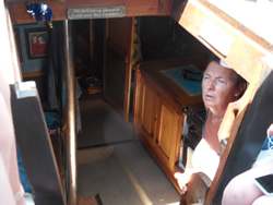 Ann and I stood and watched Lee fall so many times we gave up and began the morning ritual of tidying away the sleeping arrangements giving us space to move below deck once again?