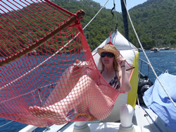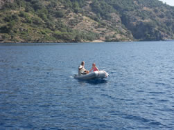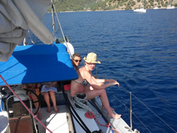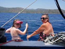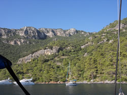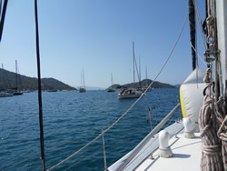 Once all are fed at breakfast, we leave Fethiye harbour and head south east into Skopea Limani, heading for Deep Bay. Ann gets little rest from the galley, someone is always thirsty or hungry?