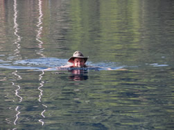 Other than that we spend a restful day aboard, occasionally cooling our selves in the water, Lee finishes his book, at one word a minute it takes some time?