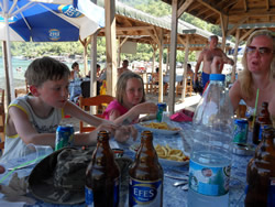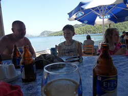It's then off to the beach bar for dinner and a few beers, Lee books a taxi for tomorrow afternoon for the airport. As we are eating some one appears from the Taxi office (hut) to tell us the road is being closed at eight in the morning - we now have to return to Göçek to get a taxi - no big deal we have plenty of time.