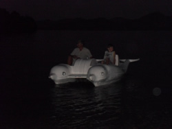 Georgia, Reece and I head off on one of their "beach toys" into the darkness, the trip is not too long, both kids are too tied to paddle?