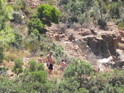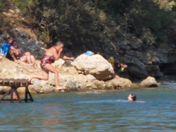 The small bay is relatively quiet and shallow where we are, we snorkel, plenty of fish around to watch. Unfortunately a snorkel was dropped over board in eight meters of water but I was able to recover it first dive? I was so proud of myself that I sent off and email to my diving instructor (Niko), telling him of my achievement? I got a mail back declaring I should be able to recover from fifteen meters?? I take the kids ashore to explore, we follow a dried up river bed into the hills, it is obviously full flowing in the rainy season. At one point we come across a deep well and a nearby man made water trough. Nearby "droppings" indicate it's usage by goats, some one is lifting the water from the well into the trough?