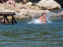 Georgia talks Ann into jumping off a nearby wooden pier, we are not sure whether Georgia is trying to have fun with her Nan, or kill her, stiff Ann never says no!