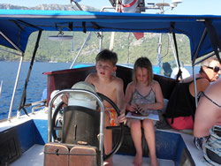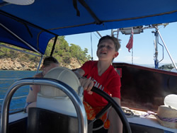 We check out a couple of bays with Reece at the helm (steering to you land lubbers?) as we head south.