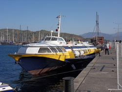 Our visits to Turkey are restricted to 90 days, this is how long your visa lasts. Sailaway can stay in Turkey for up to five years and so she should when you consider the process and cost to get her registered? It is easier for us to leave Sailaway in Turkey, rather than process her out of Turkey, into Greece, then back into Turkey again. We will take the hydrofoil ferry from Fethiye to Rhodes, (or Rodos, as the Turks say?) at a cost of €120. We were booked on the ferry last Friday, we were boarded, the engines started, then they were then stopped and we were informed the weather was too bad at Rhodes? We were surprised we were even boarded as the 0600 the forecast said winds of 30-40 knots (a gale) - there must have been some benefit to some one to take the process so far?