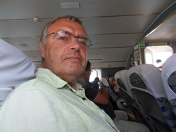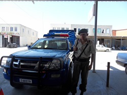 It was a good thing that I had my trusty mechanic on board (Ann), we both set about the engine once it had cooled a little, the out side temperature was 35C so down below was even warmer. If we had been back in the UK we could have contacted the union representative and had some air conditioning units brought in before we would agree to start work. Still this is Turkey, another job to be done the sooner we start, the sooner we finish as they say? I thought it easier to remove the damaged pump as it would be easier to explain to "some one" what we needed. The "some one" was the next problem, Sarsala is literally at the end of the road, any thing further south of us is serviced by boat? Then there was the question do we head for Dalaman, Göçek or Fethiye - please not back to Fethiye? The next problem was - how do we get there, it was clear we needed some local help, local reliable help? The good thing was that Sailaway was on a buoy, secure no matter the weather, we went ashore armed with the broken pump and the engine manual. Our engine is a converted Ford diesel so we stand a good chance of getting what we need from a good car parts store? We went ashore and made our way to the beach bar, we thought we would start there looking for help? Inside, having a drink were three "Jandarma Officers" (Police) - who better to trust with our problem? I waited until they had finished and looked as if they were getting to leave and I walked over to the officer in charge and with manual and pump tried to explain our problem, he asked if I spoke German as his English was poor? When I said no he called one of the staff over who spoke a little English, we made some progress then he picked up his mobile and made a call? He then explained via the translator that he would take us to Dalaman, to a store who would have to identify, then order the part from Izmir. He apologised but he said we would have to find our own way back, I thanked him and Ann and I left with them. They had a twin cab open back truck, we were asked to climb in the back of the cab, the machine guns were removed to make more room for us, the third officer and another local scrounging a lift jumped into the back and sat on a bench.