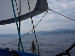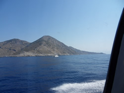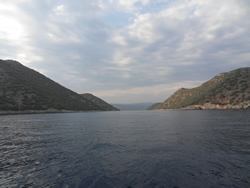 Within and hour or so the wind had gone completely and on went the engine, we turned due south and bounced in the swell. We were to take the small channel between the mainland and Domuz Adasi, we would then head east into Sarsala Bay.
