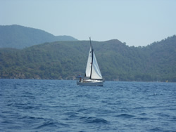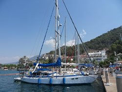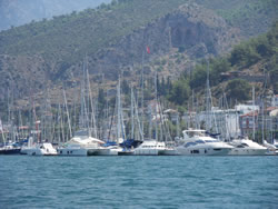 As we walked out, I could remember which direction we came but it was quite a distance to the town to find a cab and make our way back? We must have looked lost as a Turkish man asked us in English "do you need a cab?" He had been in the cue, he knew we were on a boat at Sarsala, he then used his mobile and called us a cab? While we were waiting he explains to us that he actually has an English wife, that is how he learnt to speak the language. Most people in the UK that have holidayed in Turkey know of Dalaman Airport, many pass through but it was clearly, almost untouched by the tourist trade, we were surprised? We had a look around, most shops available, we were even able to purchase (with difficulty) new walkie talkies at a good price, ours had failed only last week? They are extremely useful to have as it is not always possible to hear one shout from one end of Sailaway to the other, be it due to noise from the wind or engine?