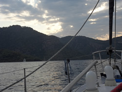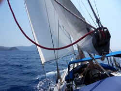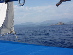 It took some time so get past "Fethiye Adasi" the wind had stiffened so much, the sea then building against us. We had plenty of time so we sat back, kept Sailaway on the auto pilot and watched the world go by as we tacked south?