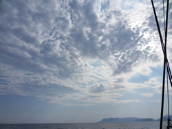 As the afternoon progressed the wind began to drop so we shook out the reefs, taking us back to full sail - the sky clouded over and for the first time in months we lost the sun, Ann cheered!