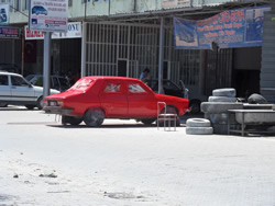 We were then driven through Dalaman, out into the countryside once again, eventually we turned into what we could only describe as a "Trading Estate" all to do with car and motorcycle repairs of any kind. It resembled a wild west town, it even had it's own market and cafe - we would never have found it in a million years?