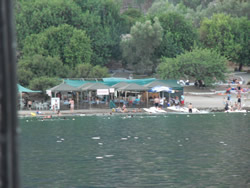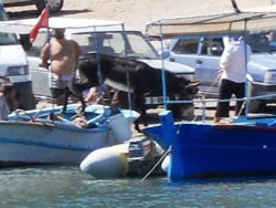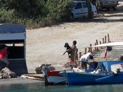 We were attacked by one vessel, they are all driven by the single cylinder diesel engines that merrily thump away, day after day. This vessel had the strangest passengers yet seen, two men, a donkey, a goat and a sheep? The boat pulled up at the quay, the livestock climbed off with relative ease, as if they had done the trip many times? Off they disappeared up the hill to "where ever?"