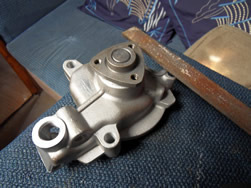 Once back onboard the work began, the engine camshaft belt was due a "precautionary exchange" as the manual calls it? We completed the exchange as it eliminated a further strip down during the winter? The coolant pump was a Turkish copy, I have to say we probably did pay a full Ford price? Turkish people are very good, as many others are at converting an opportunity? The machining of pump had not been completed, I copied the relevant Ford dimensions as best as I could by hand and fitted the pump?