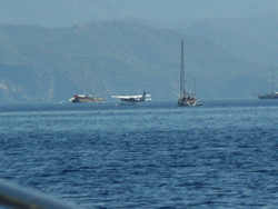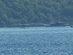 This is our final day in Sarsala, tomorrow shows signs of a good winds forecast for us, time to leave our favourite bay in Skopea Limani? Today, while sitting up on deck the Limani gets an unusual visitor - a seaplane? It came down quickly from the sky landing in a quiet section of water. The plane seemed to have no true reason for landing, we were not expecting company so it clearly had nothing to do with us?