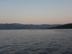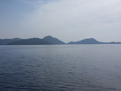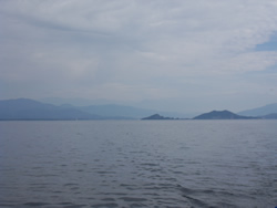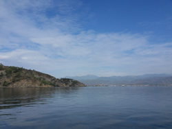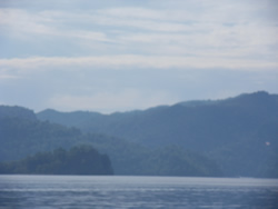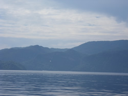 The mountains, islands and resorts to the north are hidden by cloud and mist every thing appears a dull blue in colour. The clouds hint at rain but none is forecast?