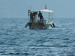 The nearby pontoon was still quite busy, fisherman, local boats and snorkelers but with wet suits on, clearly locals?