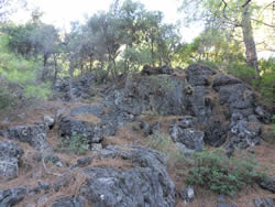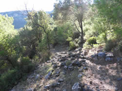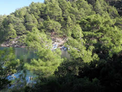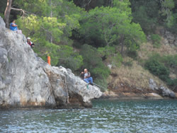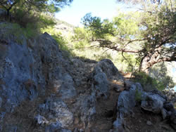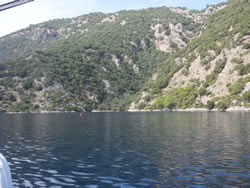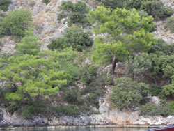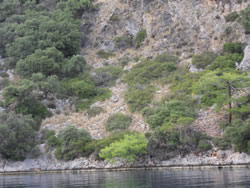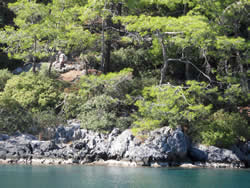 The path began some where over by the beach so we took our dinghy over, leaving it beside the small jetty. The path was rugged and steep at times, more often rock than not? We made our way along the waterside, occasionally disappearing into the woodland behind, we were given a different perspective of the anchorage from the land, Sailaway being the only private vessel there accompanied by three gullets. As we walked the pathway we became more and more aware of wild life as many noises could be heard in the scrubs and movement could be seen as "some thing" ran for cover time and time again?