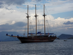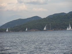 Also, the rod fishing has increased, we watch the open boats lay out nets time and time again, the more I write, the more I convince my self it must be seasonal - ever talk to yourself, if so it's our secret? Looking out into the Limani there is still quite a bit of sailing activity, I watch as three gullets sail towards Gocek, a magnificant sight.
