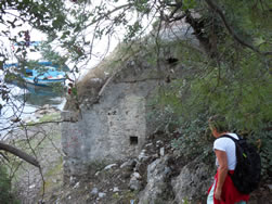We climbed higher from the shore then began to descend into an olive grove, the old terraces chocked up with fallen walks made from local stone. It looked some what deserted, then we noticed the small number of olives lying on the ground, the trees at this time of year empty - it looked very much like some one had harvested the crop?