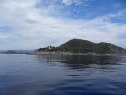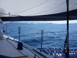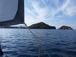 We leave the small cove in which we had spent the last couple of days, under motor unfortunately, not a breath of wind to be had, or forecast!