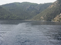 It was a different waters today to that we had traveled west in, very little traffic now, we saw the odd vessel, quite a lonely feeling as such. There was no wind at all only the occasional gust from the west, nothing usable to us so we motored. We worked our way along the coastline past the island "Ak ar Bögazi", it was just behind here where the shark we had seen earlier was caught.