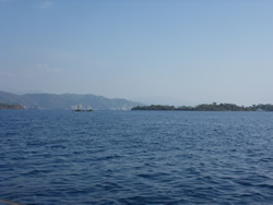 As we make our way out of the large natural harbour, with the exception of a small boat or two we have the waters to our selves. We pass the grand hotels at the harbour entrance, all but deserted with the exception of one or two families enjoying the beaches.
