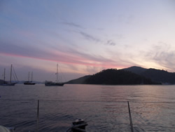 With our errands complete we return to Sailaway and watch the sunset on deck, the colours and light cloud formation very eye catching.