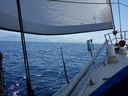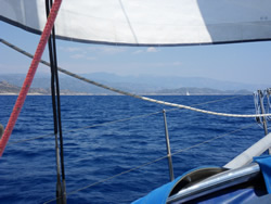 Once past the headland point (Ulü Burun) we were in more open water, the slight breeze we had was from the southwest so we would have less obstruction from the islands, cleaner wind for us. As we thought as we cleared the point we were able to roll out our headsail and switch off our engine, progress was slow, but quiet, only managing three knots or even less but we have no schedule like the tourists on holiday?