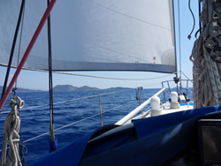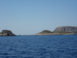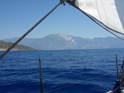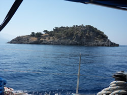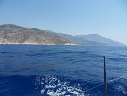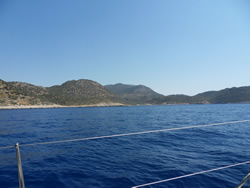 Our trip was very straight forward, north out of Bayindir Limani, southwest out of Kas Limani, then follow the coastline to the east. The interesting point was to see the Greek island of Kastellórizon so close, only a mile off the Turkish coast. Just for interest Kas was indeed Greek until the 1920's. There were a number of small islets to work our way past or though but no great issue, the wind to sail, was what we were looking for!