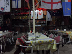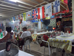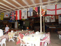 The restaurant was totally different to what we had experienced, the tables and chairs draped with woven rugs, with flags of every nation, and charter organisation hanging high!