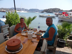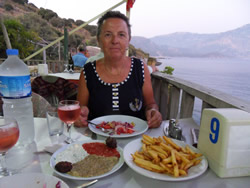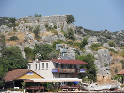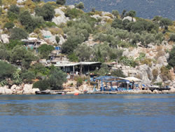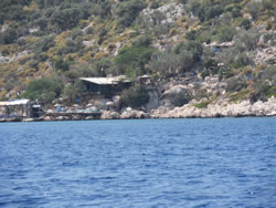 We had decided not to visit the harbour of Kas as we had been told by many that it was identical to Kalkan in many ways, so were were heading for the small anchorage in Bayindir Limani. As we rounded Ince Burnu into the Limani we came across a small, rickety cafe/restaurant - it had a certain attraction to it as long as it stood up long enough?