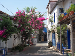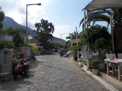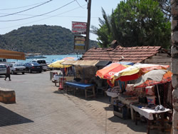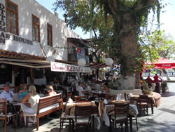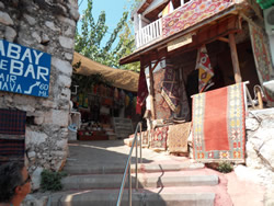 The street eventually turns to the waterfront, as we turned away up a series of steps to investigate "what ever?" we are stopped by a gentleman in a shop selling "old kilim" he enquires as to whether we arrived by car or boat - we answer his question. The conversation develops further, he offers "Yachting Services" and owns the pontoons on the front. We were offered a six month berth, inclusive of water and electricity for €700. We explain we are already committed in Fethiye but we exchange details, it could be an option for the future?