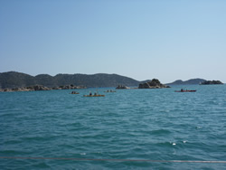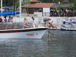 The morning had started very early for the tourists once again - I thought they were supposed to be on holiday? The activities range from adventure sports, canoeing in this case above, the usual gullet trip and of coarse, jumping off the tops of cliffs and landing in the car park on the quay! A parachute is supplied with the latter, all before 1100 hours?