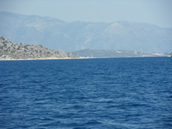 In time as we returned towards the coast the west entrance to Kekova Roads became visible to us, through the entrance we could just make out the town and castle of Kale Köy in the distance. Kekova Roads is a series of salt water between the Kekova Adasi (Kekova Island) and the mainland, it had been described to us, by previous visitors, as "Scotland with great weather" due to it's mountainous terrain and deep channels.