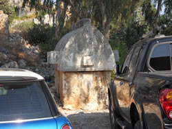 We landed on the eastern outskirts of the town rather than the pontoons and secured our dinghy, we had to also find a place to deposit our garbage? The outer limits of the town literally run into the ancient ruins, in particular a burial ground, there were ruins of ancient walls and tombs in the car park. The ancient Lycian Rock Tombs opened what looked to be a long time ago - now completely empty of coarse?