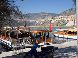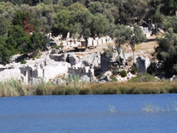 Andraki was once the port for ancient Myra, the silt carried down by the river over the centuries means that today, the original port stands well in land. The function of Andraki harbour today is to transfer the tourists from their coaches to the awaiting trip boats, their final destination being predominantly Kekova Roads.