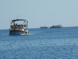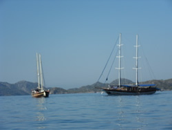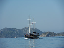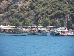 No sooner had we set our coarse then the tourist traffic became visible, leaving the port of Andraki, their destination being Kekova Roads which was now behind us.